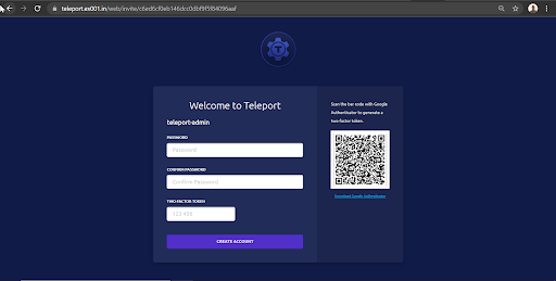 Teleport will always enforce the use of two-factor authentication by default. It supports One-Time Passwords (OTP) and hardware tokens (U2F). This quick start will use OTP – you will need an OTP-compatible app that can scan a QR code.