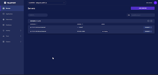 Once the configuration is done, start the Teleport service, Teleport will run as a node and will be available in the Teleport server under servers section.